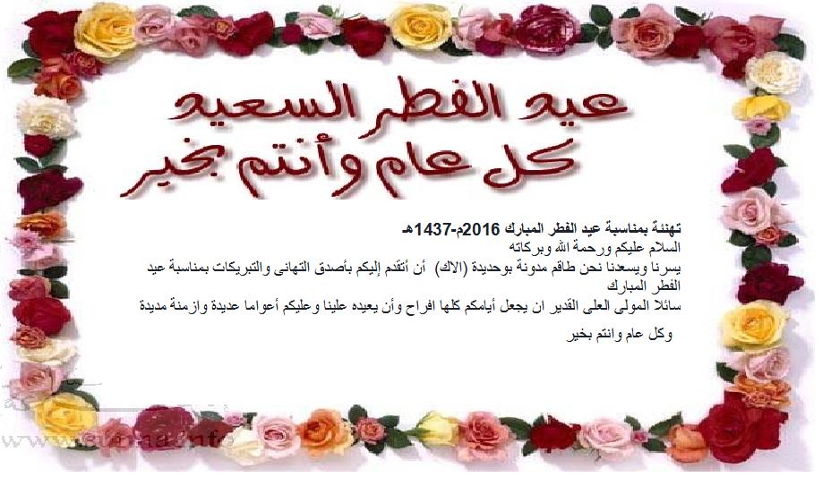 تهنئة بمناسبة عيد الفطر المبارك 2016م 1437هـ
