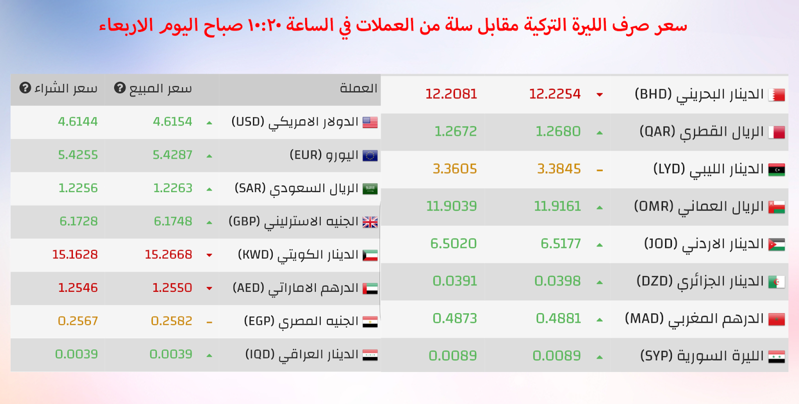 أسعار صرف الليرة التركية مقابل العملات الأجنبية تركيا اليوم