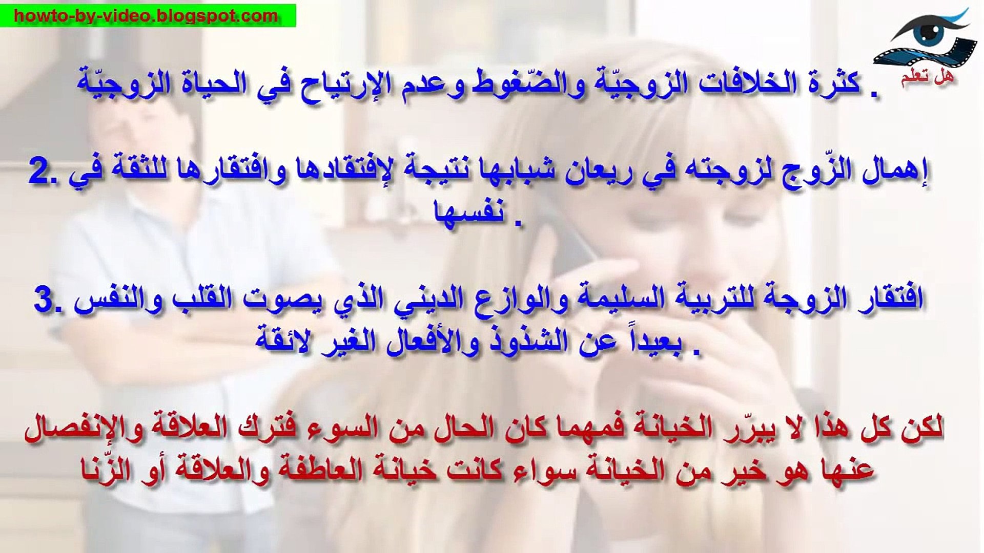 8 علامات تكشف خيانة الزوجة لزوجها إضغط لمشاهدة الفيديو Ra2ed