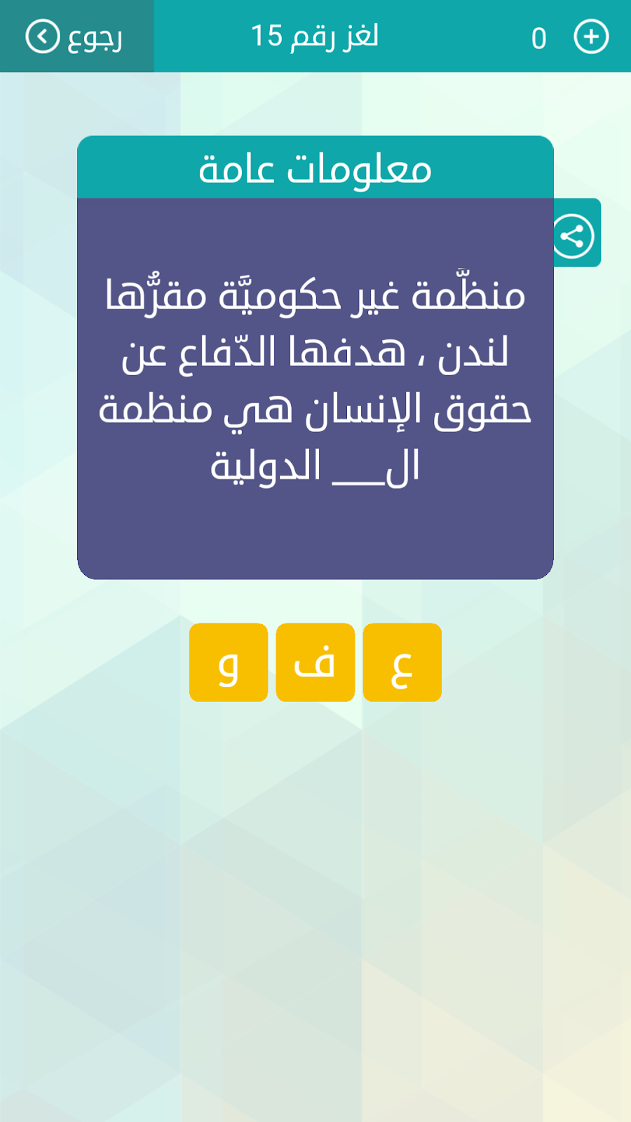 حل لغز منظمة غير حكومية مقرها لندن هدفها الدفاع عن حقوق الانسان هى منظمة ال الدولية لغز رقم صقور الإبدآع